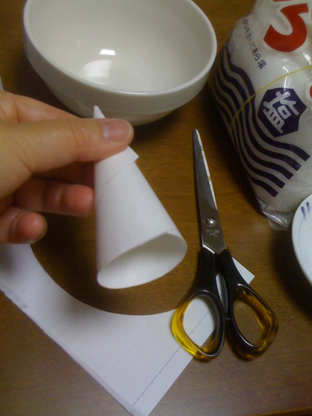 早速、上記サイト情報を参考に、円錐の簡易容器にあら塩を入れて